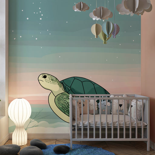 KidsWallVezmite svoje dieťa do upokojujúceho podmorského sveta s touto tapetou pre bábätká, ktorá zobrazuje želvu pokojne plávajúcu v pastelových vodách. J...