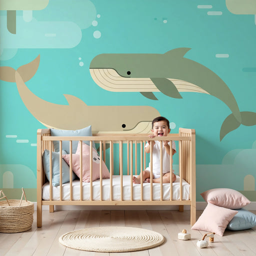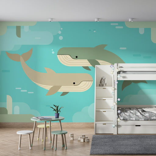 KidsWallPonořte sa do morského sveta s týmto tapetou pre deti, na ktorej je zobrazená majestátna veľryba, ktorá pokojne pláva v tyrkysovej vode. Obklopená ...