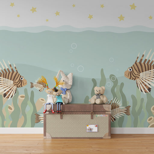 KidsWallPonořte sa do fascinujúceho sveta oceánov s týmto tapetou pre deti, ktorá oslavuje krásu morského dna. Zábavné tvory ako usmievavá rybka-púzdrovka ...