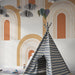 Každý oblúk je starostlivo navrhnutý, prinášajúc moderný dotyk, no stále jemný a upokojujúci. Tento minimalistický a elegantný dizajn sa dokonale hodí do detskej izby, podporujúc fantáziu a vytvárajúc pokojné prostredie.