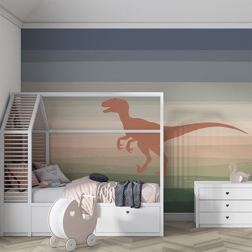 KidsWallPremaľujte izbu svojho dieťaťa do skutočného pravekého sveta s týmto tapetou pre deti. Velociraptor, štylizovaný v jemných odtieňoch terakoty, sa h...