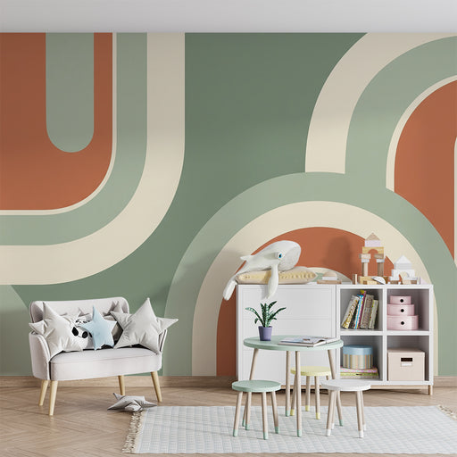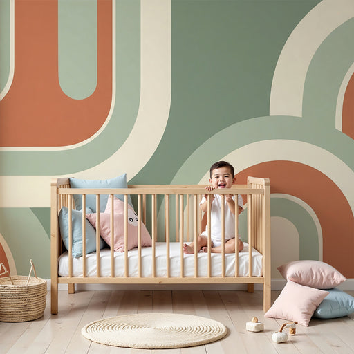 KidsWallTransformujte izbu vášho dieťaťa s týmto tapetou pre deti s geometrickými motívmi inšpirovanými 70. rokmi. Farebné oblúky v odtieňoch terakoty a ze...