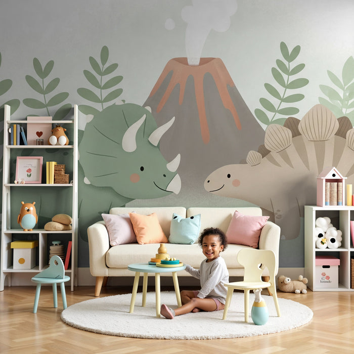 Detská izba tapeta | Malé dinosaury a sopka