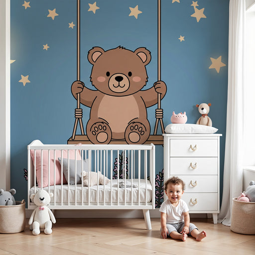 KidsWallVytvorte si jemný a upokojujúci priestor v izbe vášho bábätka s touto tapetou pre bábätká, ktorá zobrazuje roztomilého medveďa na hojdačke. Pod hvi...