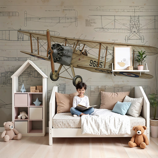 KidsWallObjavte našu tapetu s vintage lietadlami a technickými nákresmi, ideálnu pre mladých nadšencov letectva. Tento pútavý dizajn obsahuje podrobné nákr...