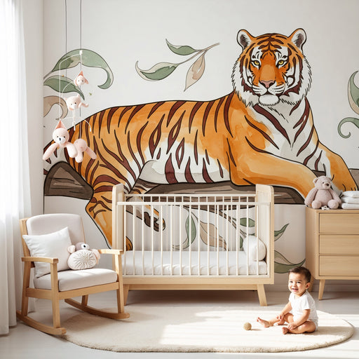 KidsWallPretransformujte izbu vášho dieťaťa na skutočné útočisko pokoja s touto tapetou pre deti, ktorá zobrazuje rozkošného tigra ležiaceho pod zeleným li...