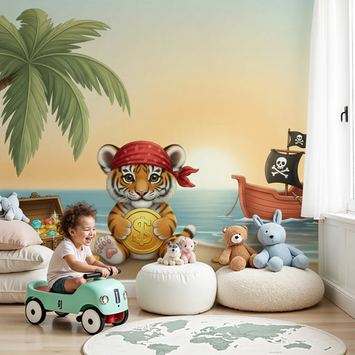 Zobraziť všetky podrobnostiDetská izba tapeta | Pirátsky tiger na pláži