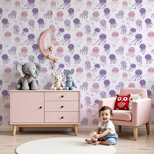 Detská izba s motívmi tapéta | Rozkošné medúzy v odtieňoch fialovej a ružovej