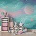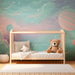 Detská izba tapeta | Hviezdne vesmírne s planétami v rôznych farbách a jemnými oblakmi