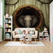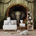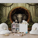 Vezmite svoje dieťa na divoké dobrodružstvo s týmto tapetou pre deti, ktorá zobrazuje majestátneho slona vystupujúceho z kmeňa stromu v zelenom pralese. Tento pôsobivý dizajn láka na objavovanie kúzelného sveta, kde príroda kraľuje.