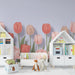 Skrášlite izbu svojho bábätka týmto jemným a upokojujúcim tapetom s motívmi nádherných tulipánov. V nežných odtieňoch ružovej a oranžovej každá kvetina vyzerá ako kvitnúca v očarujúcej záhrade, vytvárajúc teplú a útulnú atmosféru.