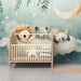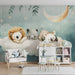 Ponořte sa do jemného a upokojujúceho sveta s týmto tapetou do detskej izby, kde si roztomilé zvieratká oddychujú na mäkkom obláčiku. Zlatohlavý lev, plyšový medveď a panda, všetci spači, vytvárajú pokojnú atmosféru, ideálnu pre najjemnejšie noci vášho malého pokladu.
