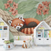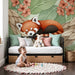 Babyzimmer Tapete | Schlafender Roter Panda inmitten von Blumen