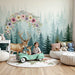 Papel de parede quarto bebê | Jeleni in cvetje v čarobnem gozdu