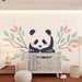 Papel de parede quarto bebê | Srčkan panda obkrožen s pastelnimi listi