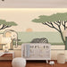 Preoblikujte otroško sobo v pravi safari z tapeto za otroke, ki prikazuje ikonične živali savane. Mogočen slon ponosno stoji ob mirnem zebru, medtem ko nagajivi opica pleza po drevesu, kar dodaja igriv dotik tej dekoraciji.