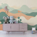 Preoblikujte otroško sobo v nežen prostor s to otroško tapeto, ki prikazuje abstraktno pokrajino. Nežni griči v pastelnih odtenkih zelene, breskve in kreme ustvarjajo pomirjujoče vzdušje, idealno za budnost in kreativnost.