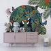 Kids room wallpaper | Sphere of colorful toucans and butterflies in the jungle