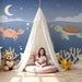 Potopite se v očarljivem morskem svetu s to tapeto za dojenčke, ki prikazuje veselga raka in mirno želvo, ki plavata v turkiznih vodah. Prizor osvetljuje nežen mesec in bleščeče zvezde, ustvarjajoč pomirjujoče vzdušje, popolno za otroško sobo.