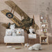 Ta tapeta z vintage letalom je popolna za navdihovanje radovednih duš in polnjenje otroške sobe z letalskimi sanjami. Ilustrirana z detajlnimi tehničnimi načrti in klasičnim dvokrilcem, ta tematska tapeta združuje izobraževanje in pustolovščino.