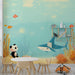 Kinderzimmer Tapete | Neugieriger Panda und Hai in einer bunten Unterwasserwelt