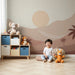 Preoblikujte otroško sobo v nežen prostor s to tapeto za otroke, ki prikazuje umirjeno puščavsko pokrajino. Silhuete palm se vzpenjajo v nebo z nežnimi odtenki, medtem ko sončni zahod obarva celotno pokrajino s toplim svetlobnim sijem.
