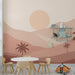 Papel de parede criança | Bež in terakota krajina s palmami in zahajajočim soncem