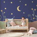 Papel de parede quarto bebê | Zvezdna noč in nežni cvetovi
