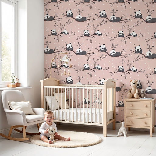 KidsWallPreoblikujte otroško sobo v oazo nežnosti s to tapeto za otroško sobo, ki je ilustrirana s čudovitimi pandami, ki se zabavajo na elegantnih vejah. ...