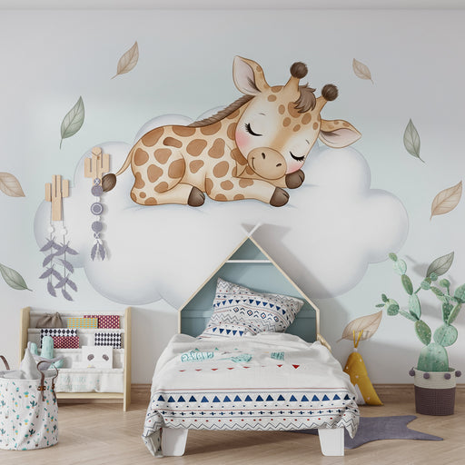 KidsWallPodarite otroški sobi nežen dotik s to otroško tapeto, ki prikazuje ljubko žirafico, ki mirno spi na oblaku. Okoli nje plapolajo nežni listi, ki us...
