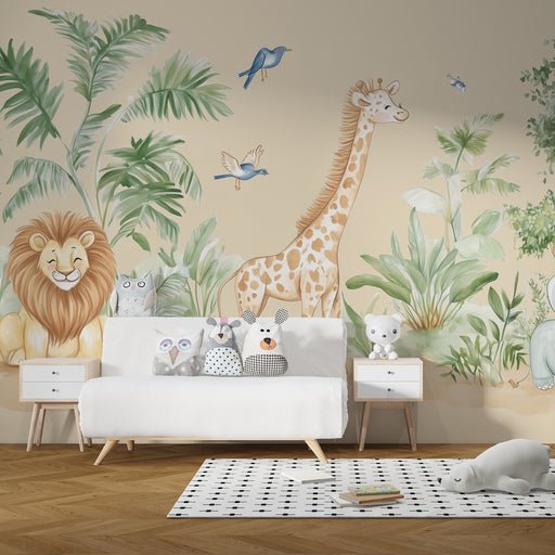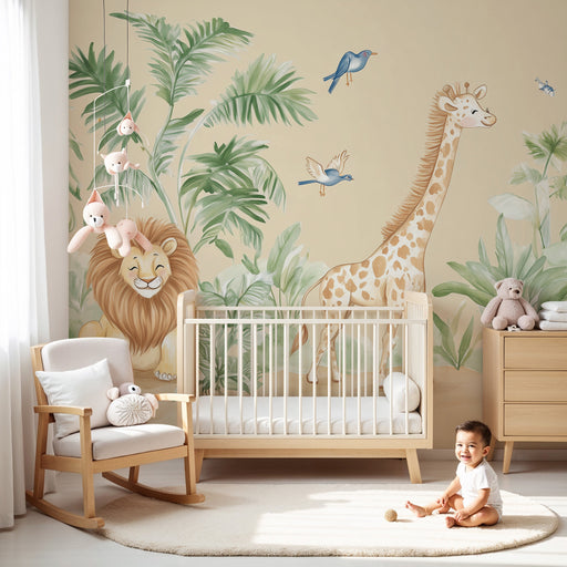 Ponudite svojemu otroku prostor, ki spodbuja sanje in raziskovanje s to tapeto živali iz džungle. Združite jo z lesenim pohištvom, lanenimi ali bombažnimi tekstili v nevtralnih tonih in dodajte nekaj dekorativnih elementov, navdihnjenih z naravo, da ustvarite harmoničen svet. Ta očarljiv dekor bo prebudil njegovo domišljijo in ga povabil na pustolovščino vsak dan v središču džungle, polne življenja.