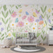 Papel de parede quarto bebê | Cvetlični vrt z barvitimi metulji