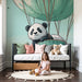 Panda s svojim nežnim nasmehom in radovednim pogledom je idealen sopotnik za spodbujanje domišljije mladih umov. Subtilne modre in zelene odtenke ustvarjajo mirno in sproščujoče vzdušje, popolno za trenutke spanja ali igre.