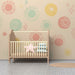 Mehka in pomirjujoča ozadje poudarja pisane vzorce, ponuja harmonično ravnovesje med dinamiko in mirnostjo. Odtenki roza, rumene, zelene in modre se združujejo, da ustvarijo topel in prijeten dekor, idealen za razvoj in dobro počutje vašega otroka.