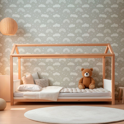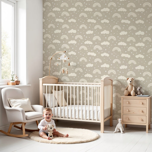 Kinderzimmer Tapete mit Mustern | Sanfte Himmel mit Regenbogen und Wolken