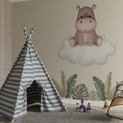 KidsWallPreoblikujte sobo vašega dojenčka s to čarobno otroško tapeto, ki prikazuje ljubkega nilskega konja, nežno obdanega z bujnim tropskim listjem. Ta p...