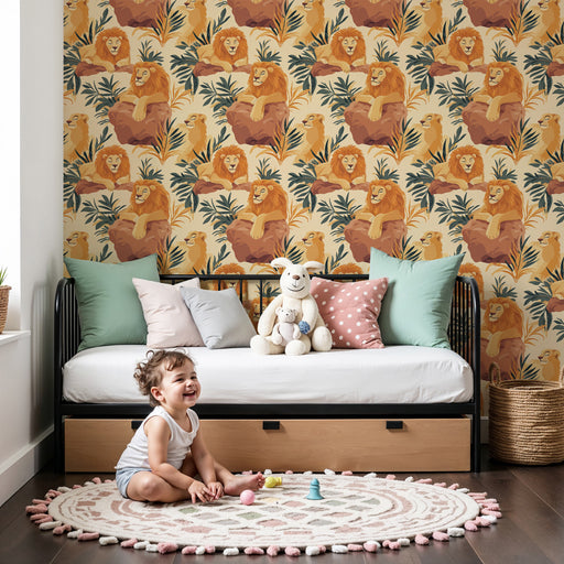 Kinderzimmer Tapete mit Mustern | Niedliche Löwen im beruhigenden Stil