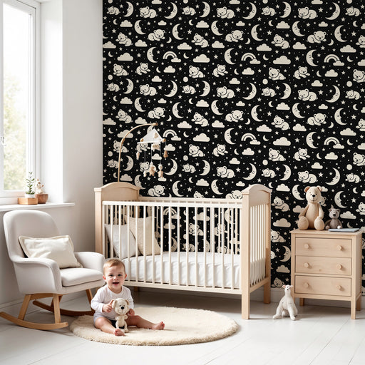 Prikaži vse podrobnostiKids room wallpaper | Medved drsalček pod zvezdami