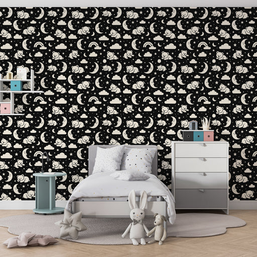 Papier de parede za otroško sobo z vzorci | Mehki medvedi in zvezdno nebo