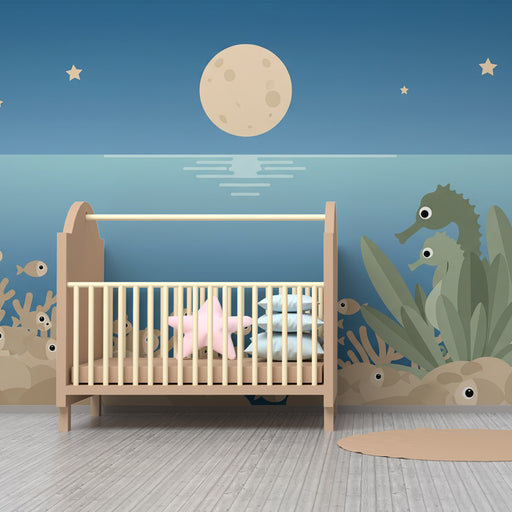 Kids room wallpaper | Peaceful underwater diving with seahorses and stars