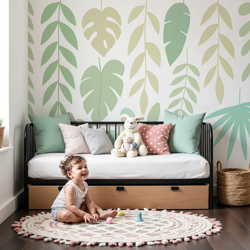 KidsWallPreoblikujte prostor svojega otroka s to moderno ozadje, ki izpostavlja stilizirane tropske liste. Nežni vzorci listov v kombinaciji s pomirjujočim...