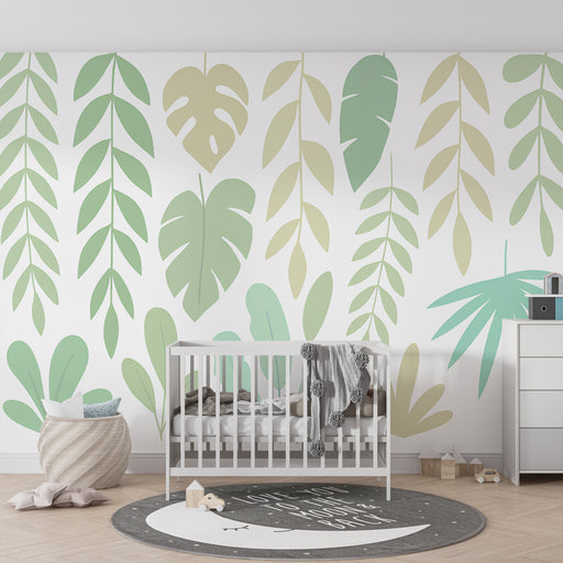 KidsWallPreuredite sobo svojega otroka s to tapeto za otroke, ki prikazuje čudovite tropske liste. Pomirjujoče odtenki zelene in bež ustvarjajo mirno vzduš...