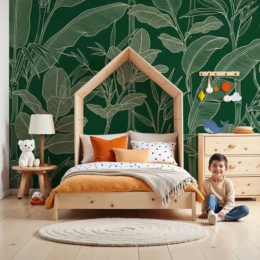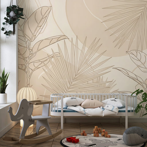 KidsWallPreoblikujte sobo vašega otroka v pravo oazo miru s to tapeto za otroke, ki prikazuje nežno narisane tropske liste z elegantnimi linijami. Ta sodob...