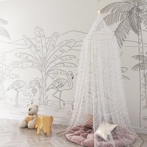 KidsWallPreoblikujte otroško sobo svojega otroka v oazo miru in lepote s to ozadje za steno . Ilustriran z gracioznimi flamingi in valovitimi palmami, ta d...