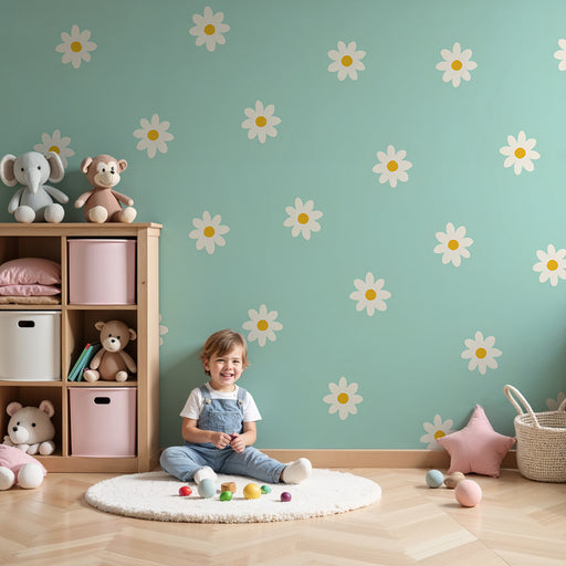 KidsWallDodajte pridih svežine in veselja v otroško sobo s to cvetlično tapeto, okrašeno z očarljivimi marjeticami. S svojim živahnim zelenim ozadjem ta di...