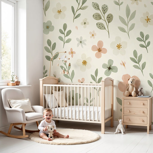 KidsWallPreoblikujte sobo vašega otroka v cvetlični svetišču s to tapeto za otroško sobo elegantno. Ta očarljiv dizajn prikazuje nežne cvetove v mehkih odt...