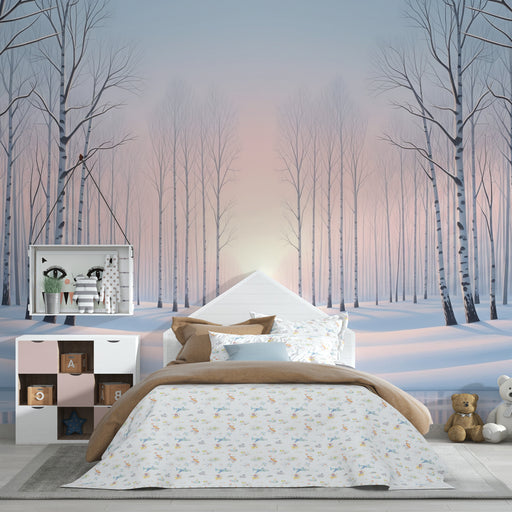 KidsWallPreuredite otroško sobo z tapeto za otroke, ki prikazuje mirno gozdno pokrajino. Drevesa z nežnimi vejami, razgaljena pozimi, ustvarjajo nežno in p...