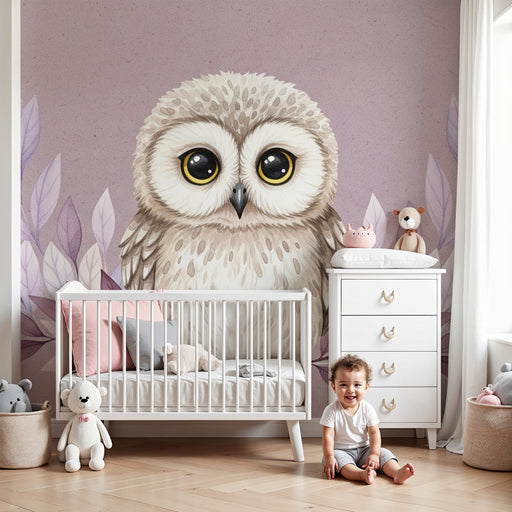KidsWallPreoblikujte otroško sobo vašega otroka s to tapeto za otroke, ki prikazuje čarobnega sove obdanega s nežnim listjem. V nežnih odtenkih vijolične i...