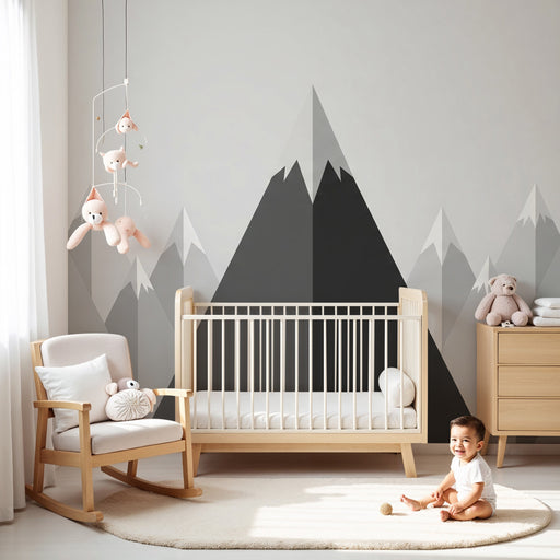 KidsWallPotopite se v poetičen in sodoben svet s tem otroškim tapetom, kjer se črno-bele gore dvigajo pod čistim nebom. V tem minimalističnem prostoru čudo...