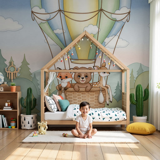 Prikaži vse podrobnostiKinderkamer behang | Luchtballon en bosvrienden